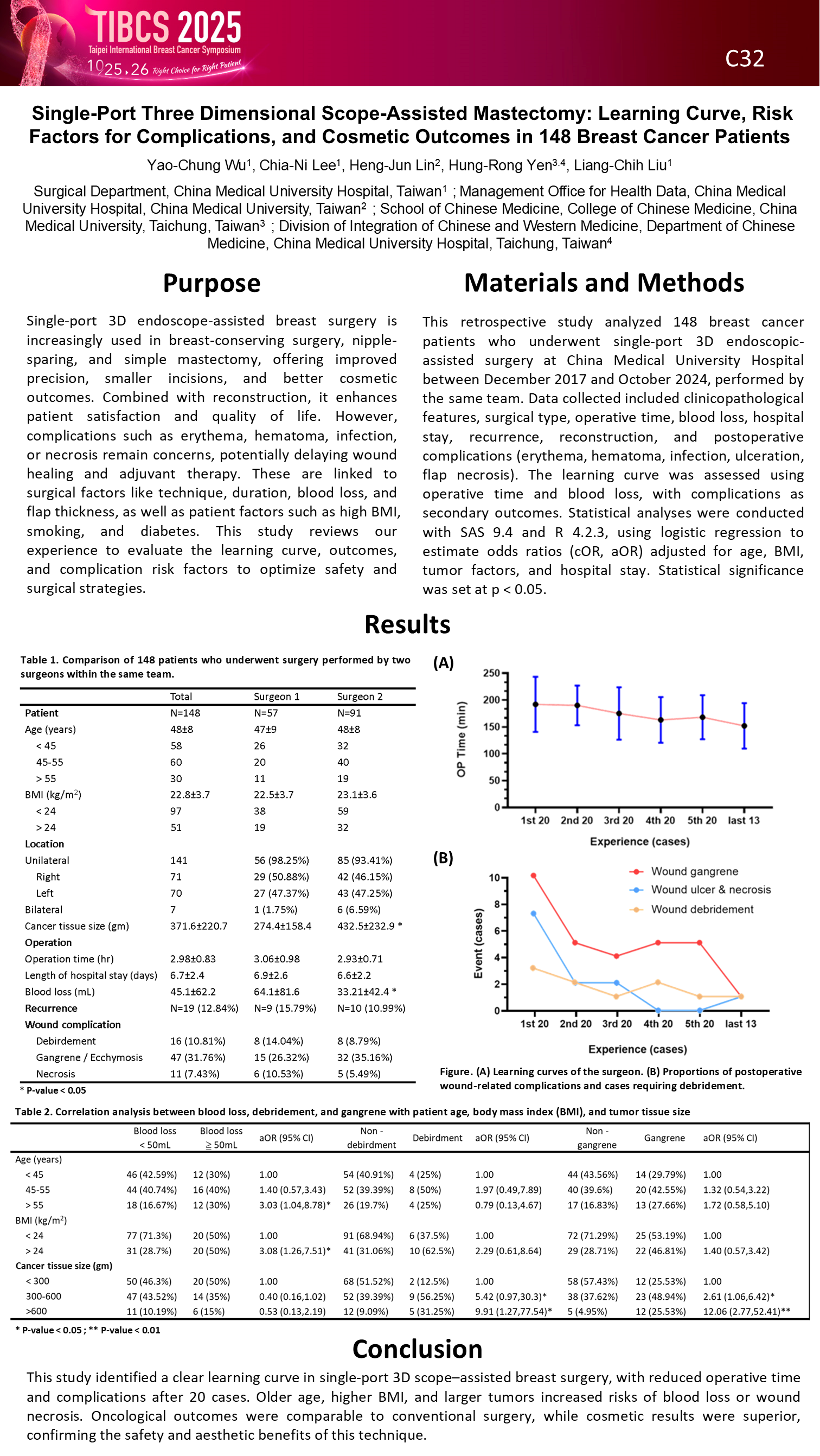 Single-Port Three Dimensional Scope-Assisted Mastectomy: Learning Curve, Risk Factors for Complications, and Cosmetic Outcomes in 148 Breast Cancer Patients