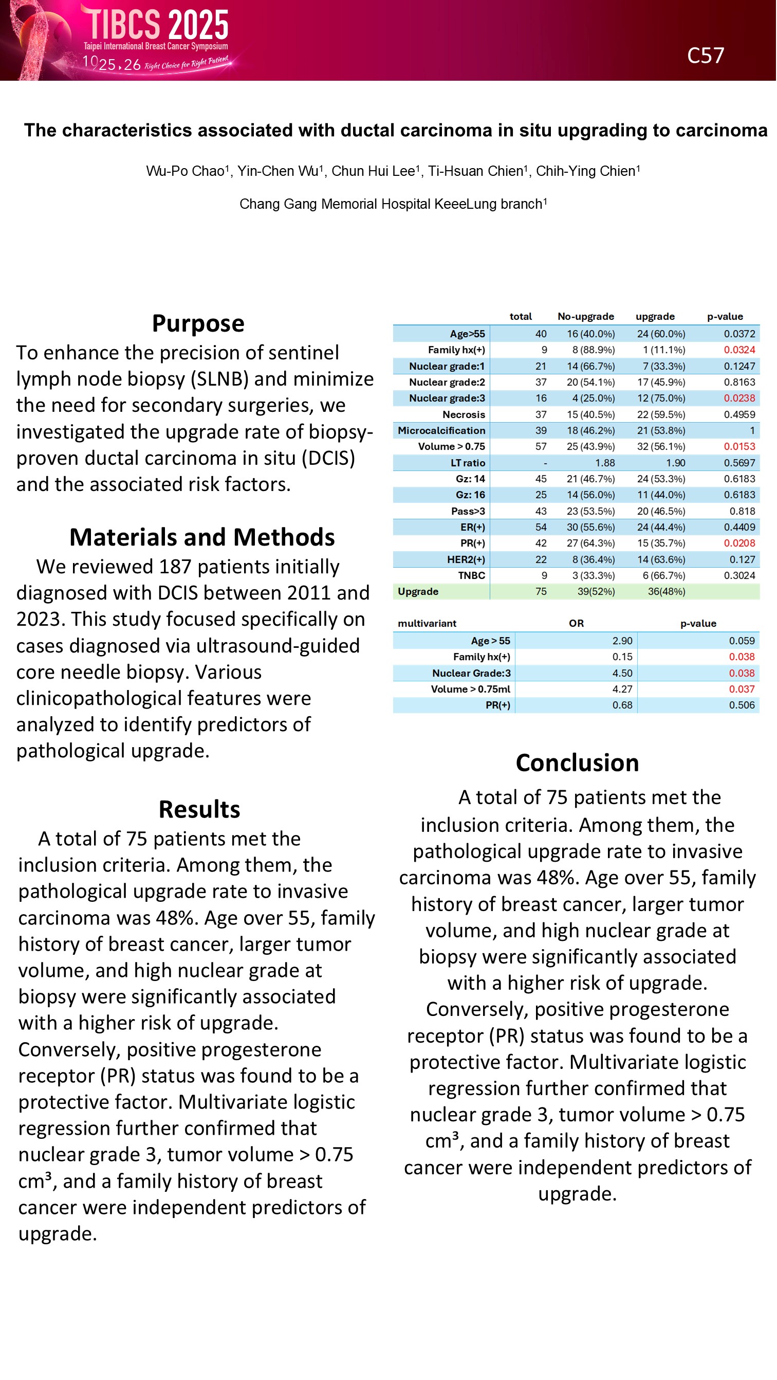 The characteristics associated with ductal carcinoma in situ upgrading to carcinoma