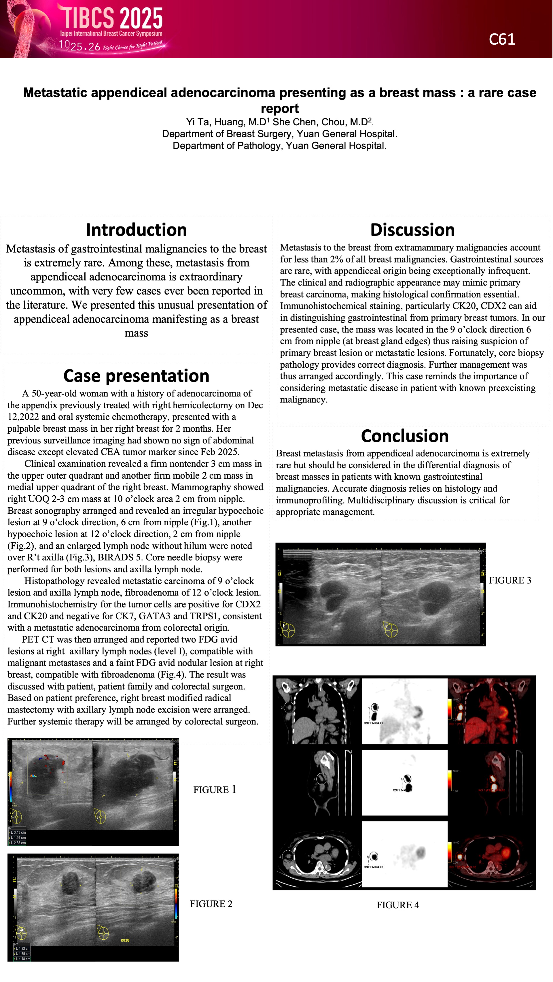 Metastatic appendiceal adenocarcinoma presenting as a breast mass