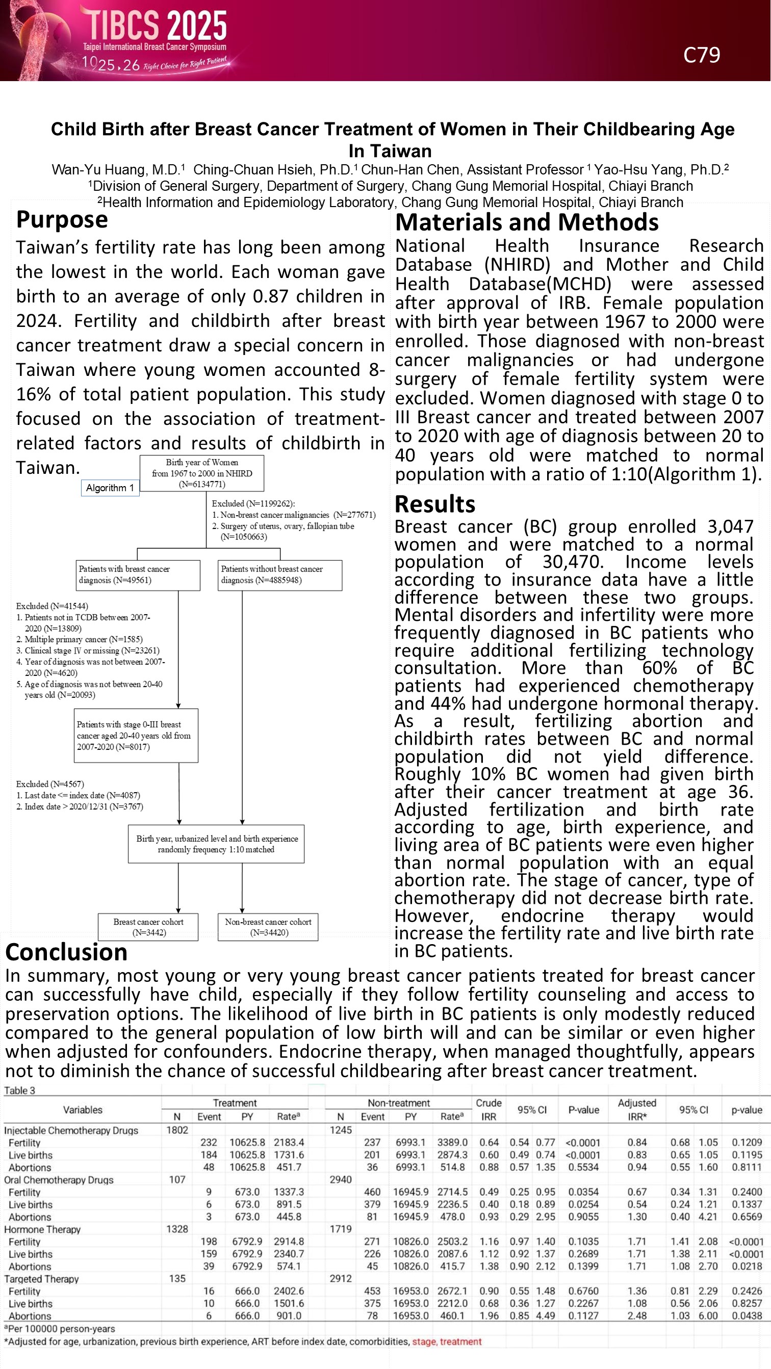 Child Birth after Breast Cancer Treatment of Women in Their Childbearing Age in Taiwan