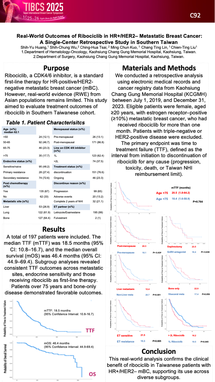 Real-World Outcomes of Ribociclib in HR+/HER2– Metastatic Breast Cancer: A Single-Center Retrospective Study from Southern Taiwan